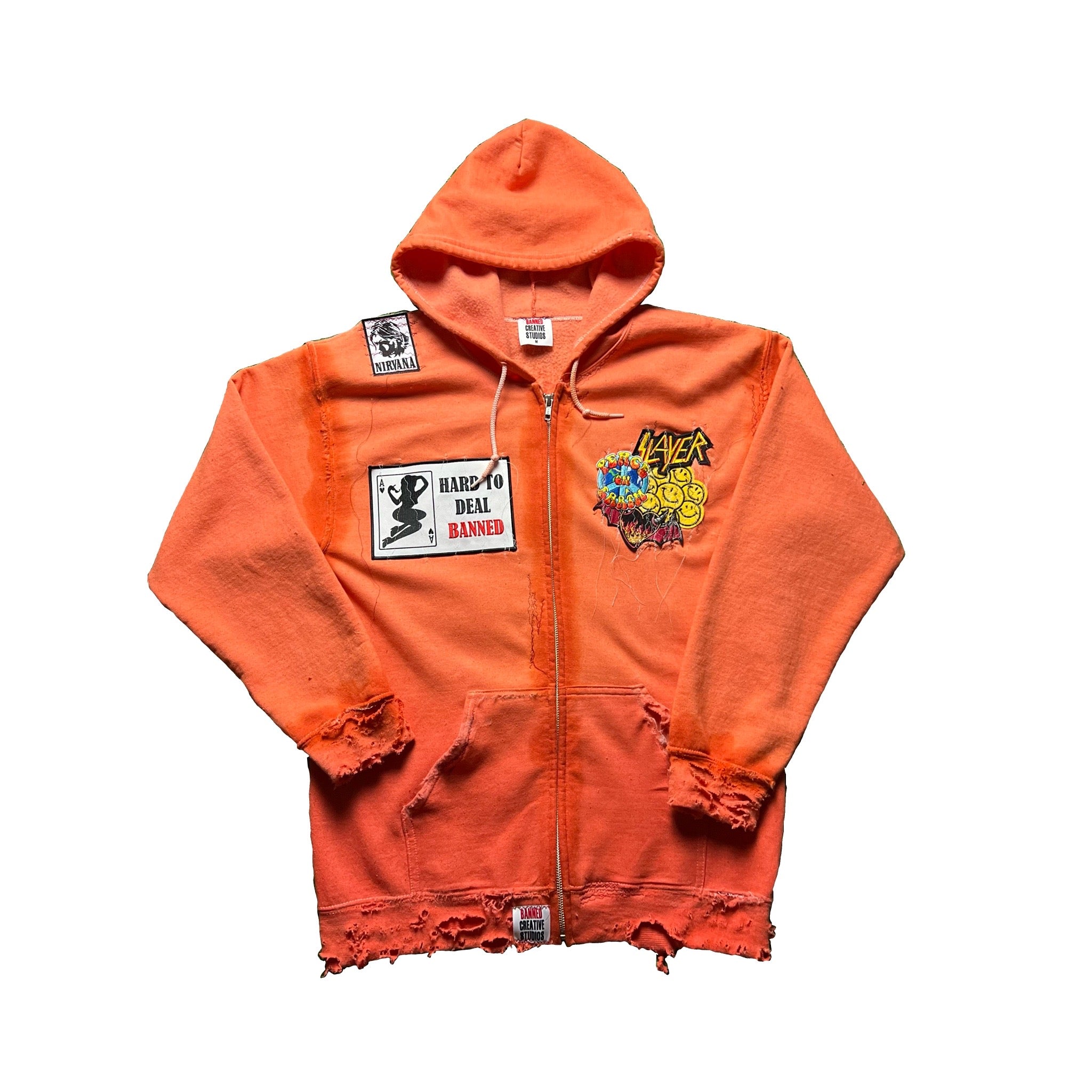 BANNED "PATCHWORK" GRUNGE HOODIE (ORANGE)