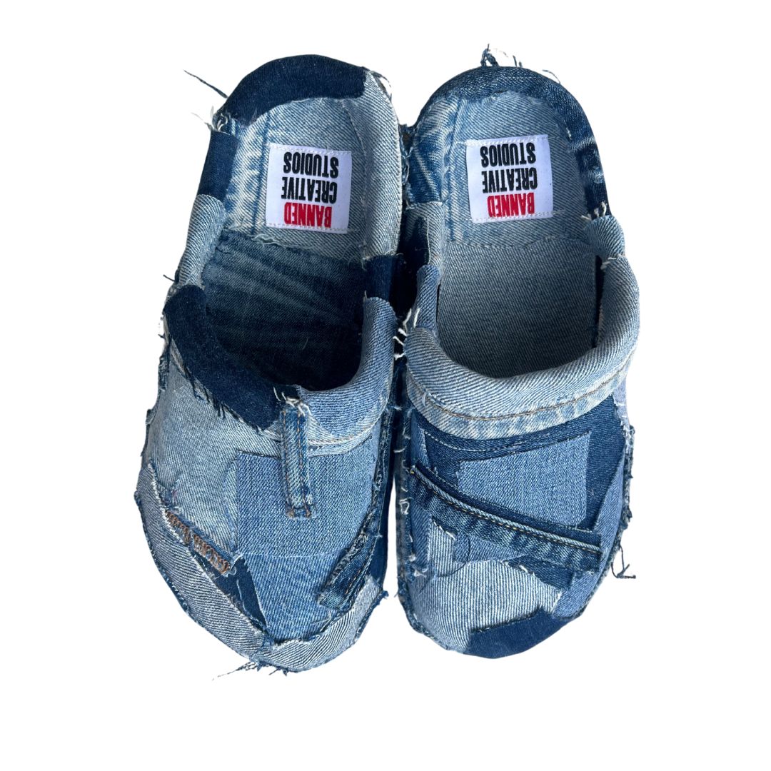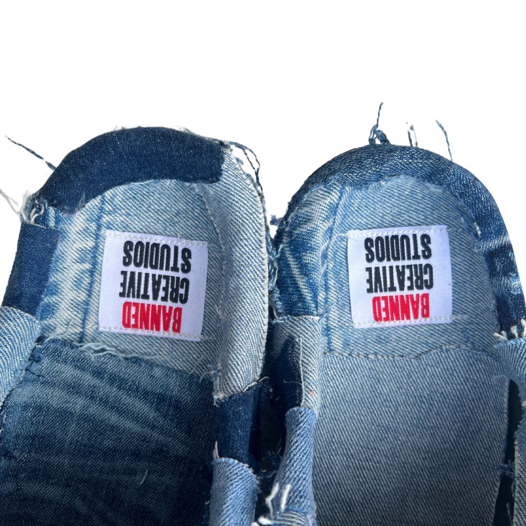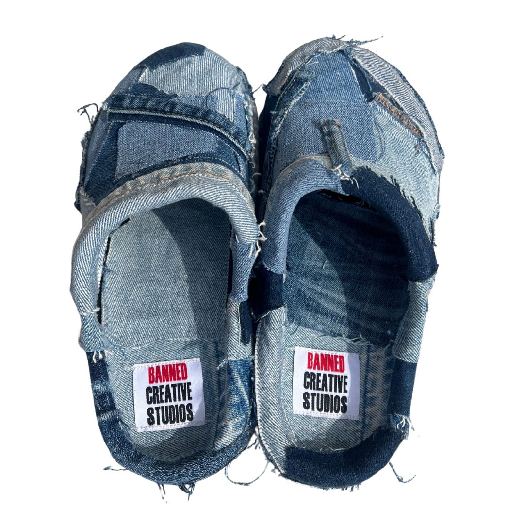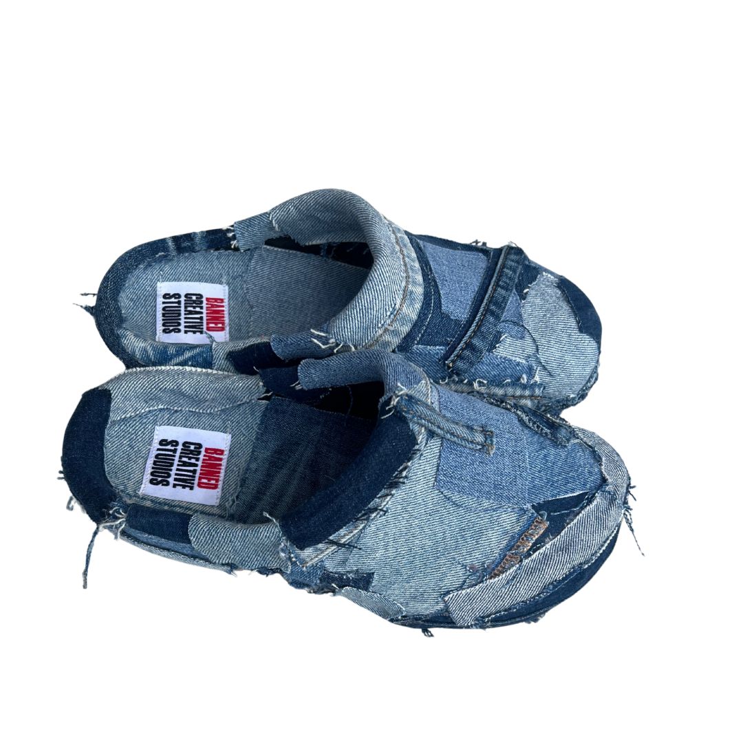 The BANNED Denim Mules turn patchwork into a statement. Crafted from denim scraps, each pair brings raw edge and comfort to your everyday step.