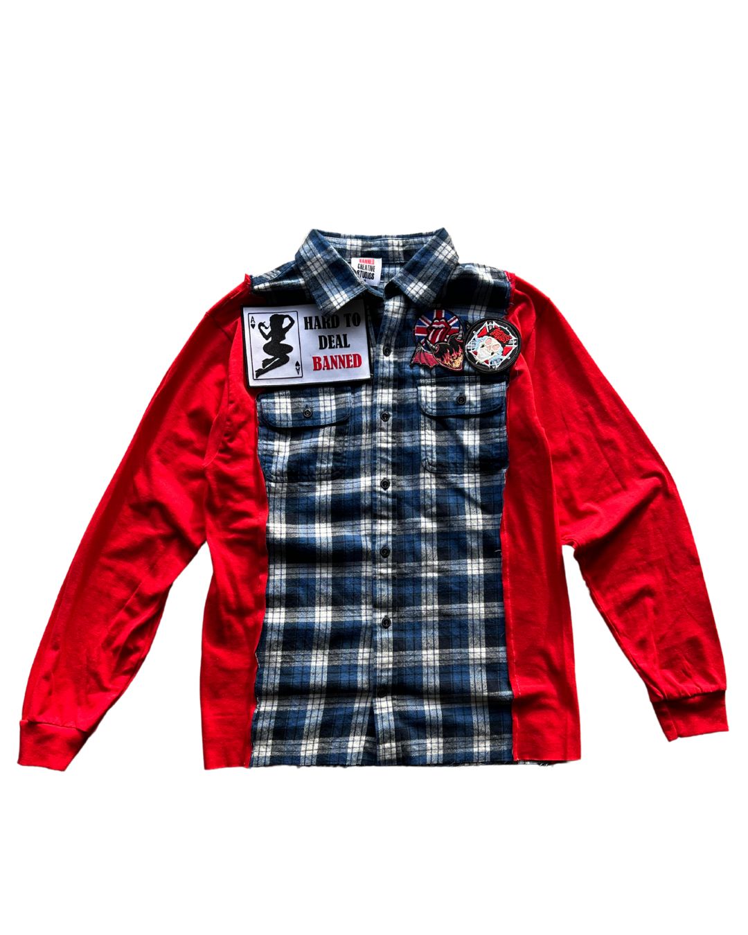 - Unique Design: Hybrid long sleeve + flannel design. Unique patchwork with branded & sourced patches